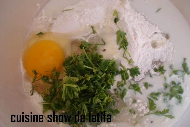 و نضيف البيض و المعدنوس مقطع و الملح و الففلفل الاسود و قليل من الخميرة